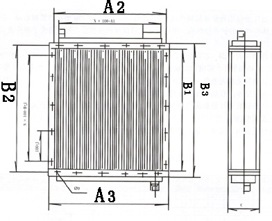 SRL型蒸汽散热器在顺气流方向分二排管与三排管排列,其型号举例如下: